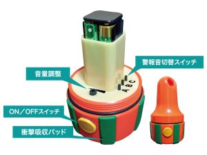 介錯ロープへ取付けて吊荷の移動時に、最大105dBの大音量で吊り荷下の作業者に注意を促します。警報音は作業環境に合わせて3種類の中からお選びいただけます。